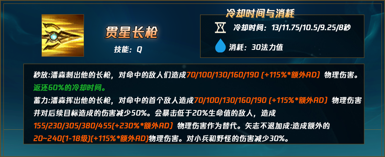 潘森斩杀本身就有非常高的伤害,足以斩杀对手很多时候不再需要满星的加持,所以如果对方血少的情况下就不要刻意的去追求打满星Q了,把满星留给其他技能更好