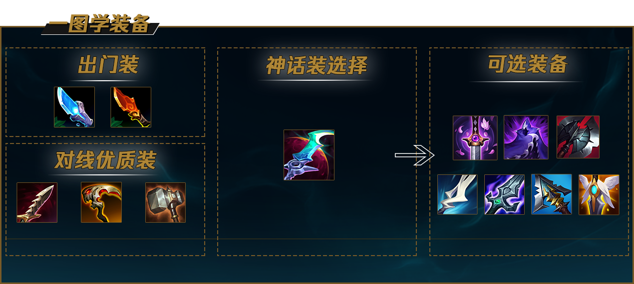 魔切:选择魔切的前提是前期抓到人,拥有足够的经济,早回家做出女神泪,后续可以出魔切,因为我们满星W的多段伤害,加上QE都是AOE,所以出魔切收益很高,但是在出到成装之前散件提供的战斗力有限,所以如果逆风不建议出