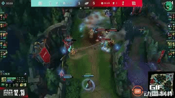 前期对线,第五局由于是决胜局比赛,双方打的都很小心,369剑魔在对线压制的同时,也在不断判断敌方上单的意图,不随便交技能消耗对方,即使在己方兵线较多的情况下,由于敌方上单走位靠前,369也没有用QE上前压制,而是早就判断出敌方打野的位置是在上路,留了二段QE逃跑,让敌方GANK失败,同时己方打野到位,配合己方打野反蹲直接击杀了敌方打野拿下一血。这一波上野的博弈由于369的判断让JDG前期拿到了东西。