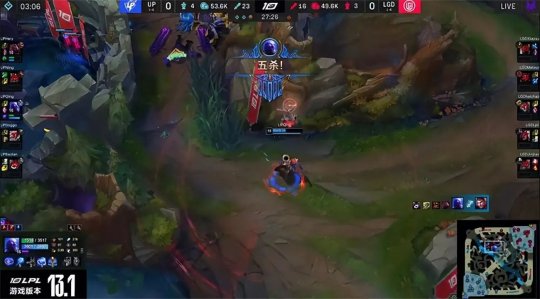大龙出生前UP在下路河道打出1换4,果断rush掉刚刚“上班”的大龙,全身而退大获全胜!LGD中、下两路被通关,经济落后3千。UP掌控了大龙区加LGD上半野区的视野,虽然LGD发现了UP打大龙,但UP的团战combo拉满,Qing的瑞兹怒斩五杀,帮助UP打出3换5团灭LGD!经此一役LGD再无翻盘希望,UP兵不血刃“听牌”了海克斯龙魂。最终UP推进上路高地,Doggo的泽丽团战无人限制火力全开,砍下本场比赛的第二个五杀,UP摧枯拉朽团灭LGD结束比赛,1-0先下一城!