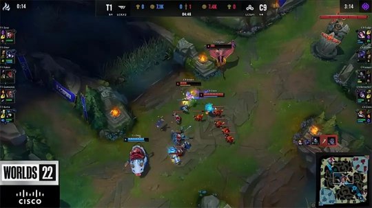 20分钟左右第三条小龙即将刷新,T1在中路主动先手秒掉了卑尔维斯以后直扑大龙,C9方面没有丝毫视野,只能白白放给T1并且无法继续争夺听牌龙。T1整顿兵马以后从下路强势推进高地,阿卡丽在野区埋伏塞拉斯二人展开皇城PK互秀操作,塞拉斯凭借金身惊险躲过致命伤害以后反杀了阿卡丽,与此同时T1大部队也瓦解了C9最后的防线推平基地拿下比赛。C9战队最终以1胜5负的战绩告别了本届全球总决赛的舞台。