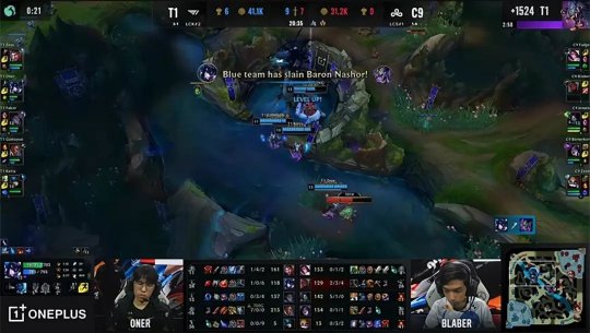 双方打野同时来到中路爆发对拼,黑默丁格灵性地游走过来加入战斗帮助队伍击杀了塞拉斯拿到一血。T1很快以牙还牙在下路三包二将卡莎和黑默丁格双杀。8分半的先锋团战C9提前集结抓死了杰斯,但T1的大部队随后形成反包围,把卑尔维斯与黑默丁格斩杀并夺回了先锋。接下来T1利用他们所擅长的运营逐渐扩大领先优势,从下路滚起雪球打开局面,虽然塞拉斯在中路被阿卡丽单杀但没有动摇T1的整体局势。T1依然在前中期成功展开攻势运营,迅速拉开了经济差距。C9被直接拆光了中下外塔。