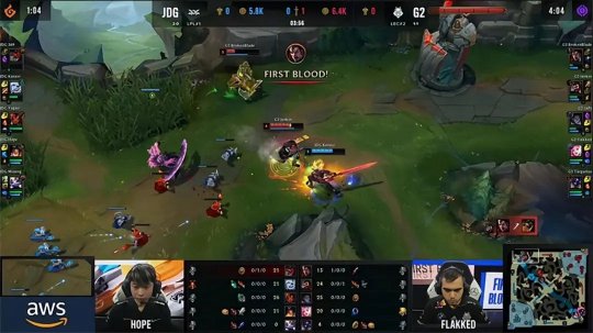 2022英雄联盟全球总决赛小组赛第四天的首场比赛,JDG战队即将迎来第一轮的最后一位对手欧洲豪强G2战队,BrokenBlade选出极为冷门的诺手上单,加上G2所擅长的萨勒芬妮下路,虽然JDG在前期取得了显著优势,但中后期一度被G2压制险些遭到翻盘,最终凭借Hope的完美发挥,JDG有惊无险战胜G2,以3战全胜的战绩收官小组赛第一轮。
