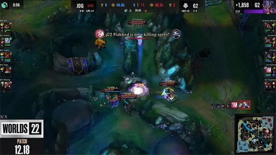 原本发育不好的萨勒芬妮拖到后期开始为团队提供成吨的增益,JDG不能像之前一样all in所有技能,而是必须谨慎地拉扯来创造机会,比赛局势愈发紧迫起来。32分钟G2大龙逼出鳄鱼TP以后双方爆发团战,男枪收割后排打出2换3,JDG队员复活以后重新在中路集结,双方再度一触即发展开团战,G2不顾一切冲进后排斩杀岩雀,但希维尔在危机关头打出爆炸输出,带领队伍团灭G2一波结束了比赛!恭喜JDG有惊无险击败G2,小组赛首轮三战全胜!