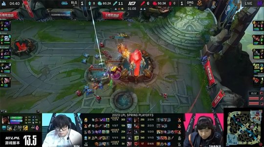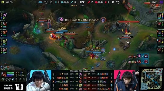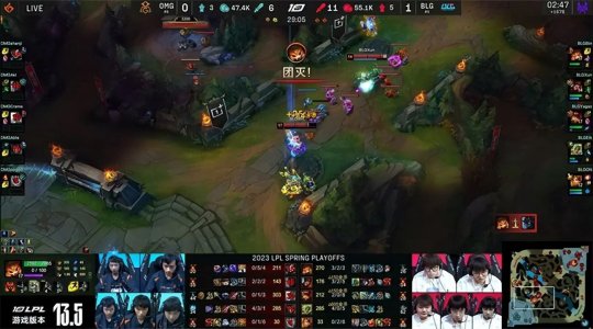 2023 LPL春季赛季后赛败者组第一轮,BLG战队与OMG战队展开残酷的生死局对决,败者将以四强身份告别春季赛征程,而另一方将进入败者组决赛,有希望继续争夺春季赛冠军荣耀。BLG战队的前中期运营与决策能力都明显更胜一筹,而OMG战队继续依靠他们擅长的团战配合寻找机会,凭借顽强的韧性在第二局实现惊天翻盘,最终把比赛拖入决胜局。BLG稳住阵脚继续发挥自身优势,在下路打开局面以后稳扎稳打拿下了比赛胜利,3-2击败OMG晋级败者组决赛。