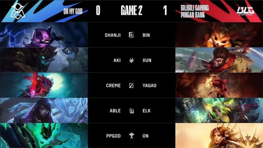 佛耶戈表演二级抓下打了OMG一个出其不意,轻松拿到了安妮的一血。9分钟左右的先锋团战,阿卡丽被BLG抓到位置落单以后因为省闪现不幸率先阵亡,OMG上野辅在人数劣势的情况下尝试强行接团,却出现集火目标分散的失误最终被BLG逐个击破送掉四个人头,前期节奏直接崩盘陷入劣势。几分钟以后OMG在小龙团战找到机会,泽丽大胆绕后分割战场打出了不错的效果协助队伍斩杀BLG上野二人,可是没想到小龙却被小法抢走。接下来两队继续围绕资源不断拉扯,OMG迟迟找不到好的团战机会,经济一直处于劣势。BLG控制住河道视野以后在24分钟左右开始偷打大龙,OMG没能及时发现这一意图,最终阿卡丽独自探查情况时大龙已经被BLG击杀,小法高额的斩杀伤害将阿卡丽带走。