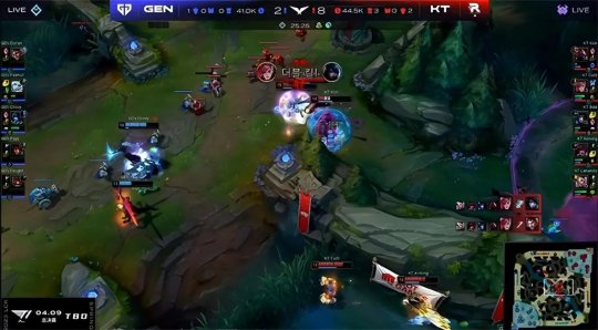 大龙出生前GEN兵不血刃“听牌”了水龙魂,双方经济持平。中期洛在小龙河道吸收了KT的第一波技能,丽桑卓开E进场分割了KT的阵型,GEN各个击破打出2换4,回身解锁了水龙魂大获全胜!虽然KT在中路抓到一波机会,秒掉落单清线的霞,但GEN四打五完全不虚,丽桑卓换惩戒做好了抢大龙的准备,KT只能放弃rush大龙。25分钟GEN在KT下半野区抓死了做视野的泰坦,韦鲁斯也被打残,KT无奈目送GEN收下大龙。最终GEN平推下路高地,势如破竹打出1换5团灭KT一波结束比赛,让一追三淘汰KT晋级决赛,并且将同T1携手出战MSI季中冠军赛!