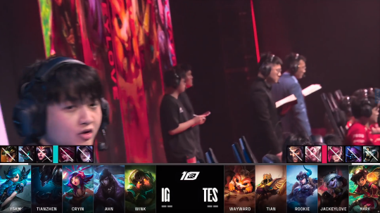 比赛前期两队打架十分激烈,IG的梦魇在中下一直找机会,帮助中下三人拿到击杀。TES猪妹在前期野区资源控制上控下两条小龙,同时还帮沙皇与霞拿到人头与推塔节奏。TES的上路则是被IG突破,利用先锋奖上路两座外塔拔掉。