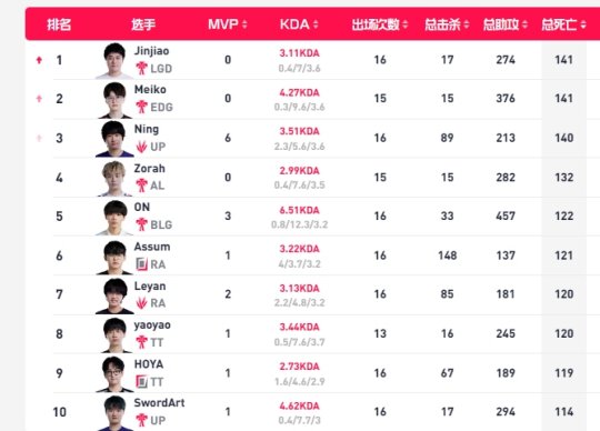 今日的LPL夏季赛上,Meiko三场累计13次阵亡,在赛季阵亡榜上断崖式垫底,成为本赛季最多次阵亡的选手:154次。